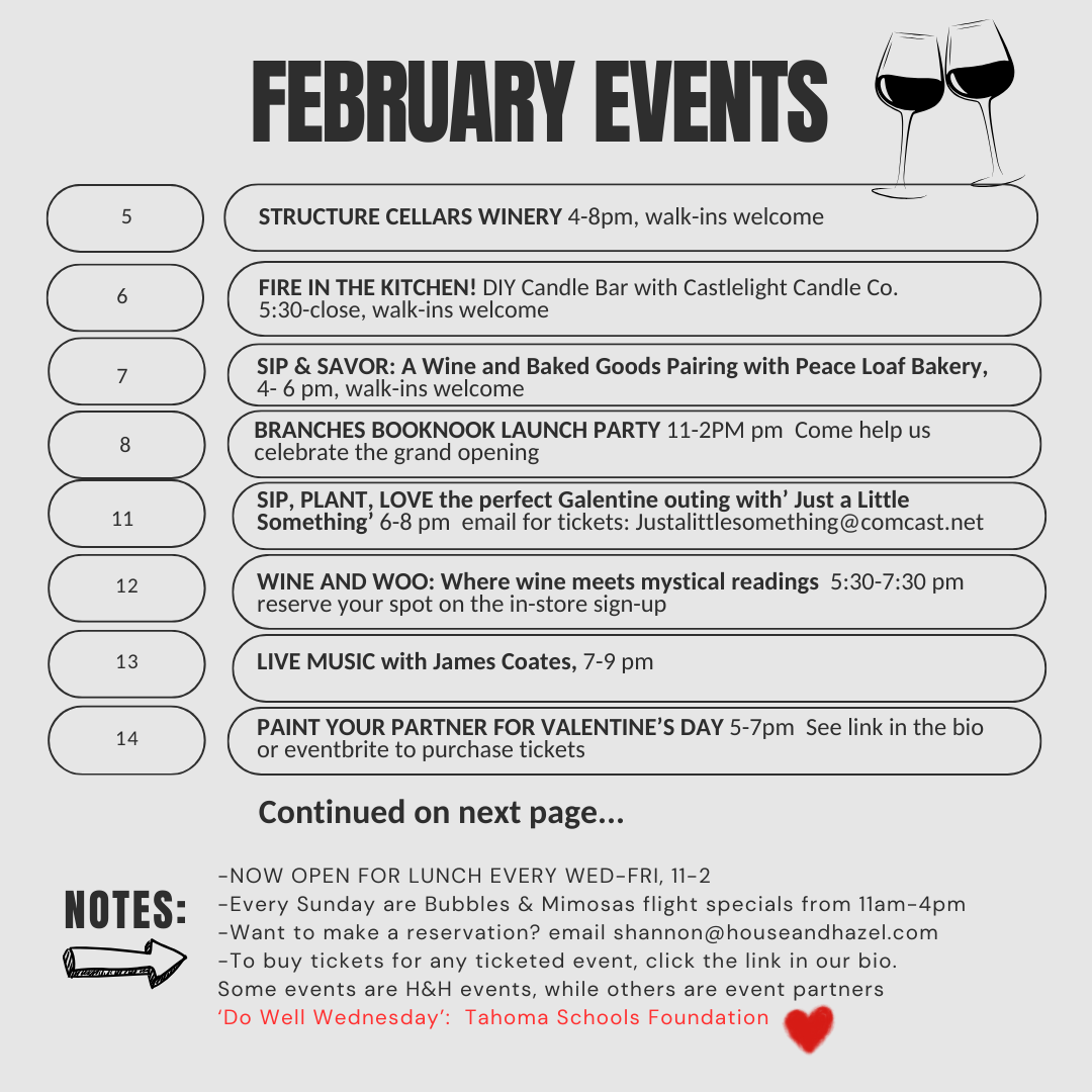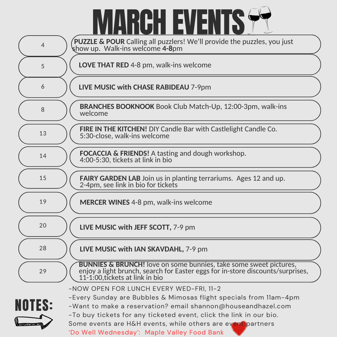 Note: some events are House & Hazel hosted, while others are hosted by our event partners. For events that are being run by our event partners, please visit our linktree here.